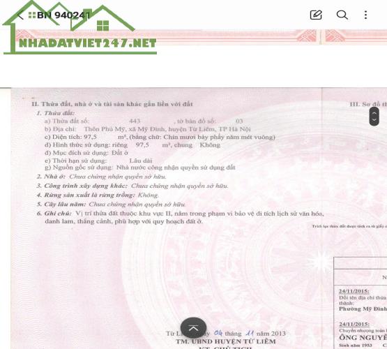 Chính chủ cần bán đất thổ cư mặt đường Phú Mỹ, phường Mỹ Đình 2, quận Nam Từ Liêm, đường lớn rộng 5m, ô tô tránh